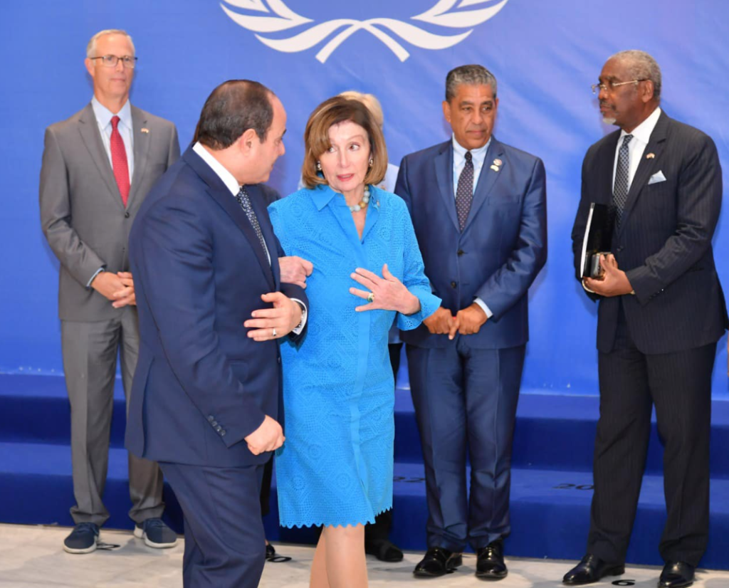 التقى الرئيس المصري عبد الفتاح السيسي، رئيسة مجلس النواب الأمريكي نانسي بيلوسي، الخميس 10 نوفمبر/تشرين الثاني 2022، وظهر الاثنان معاً في