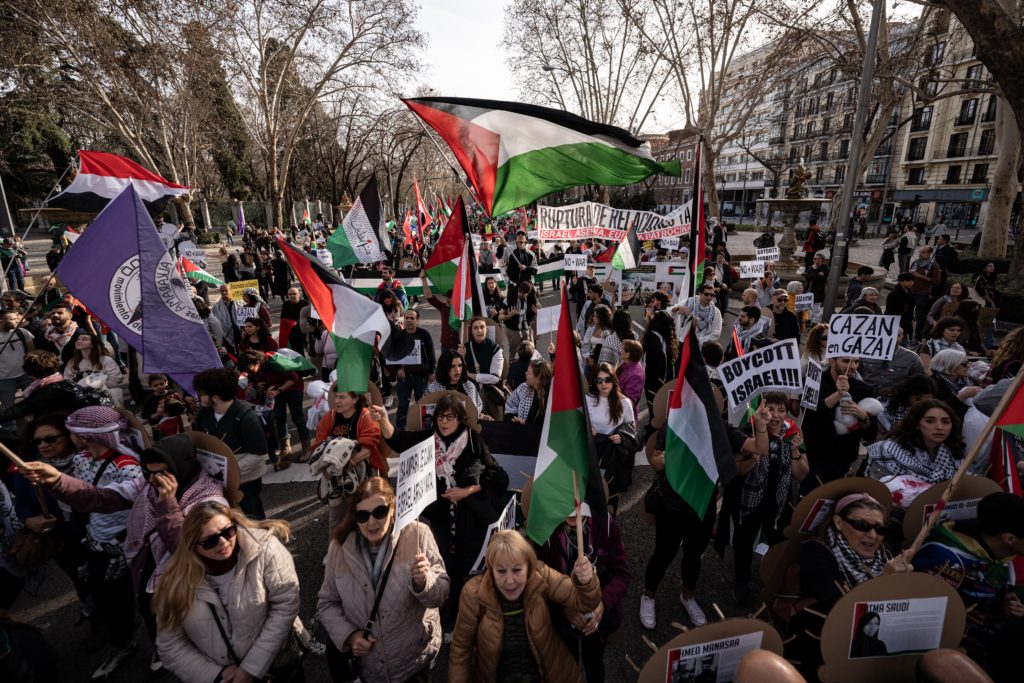طالب آلاف المتظاهرين في 20 مدينة إسبانية على رأسها العاصمة مدريد، السبت 27 يناير/كانون الثاني 2024، المجتمع الدولي بفرض مزيد