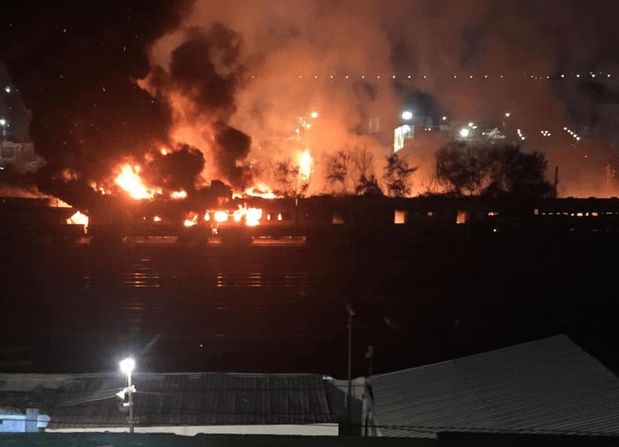 حريق هائل يندلع بقطار في محافظة المنيا بمصر (فيديو)