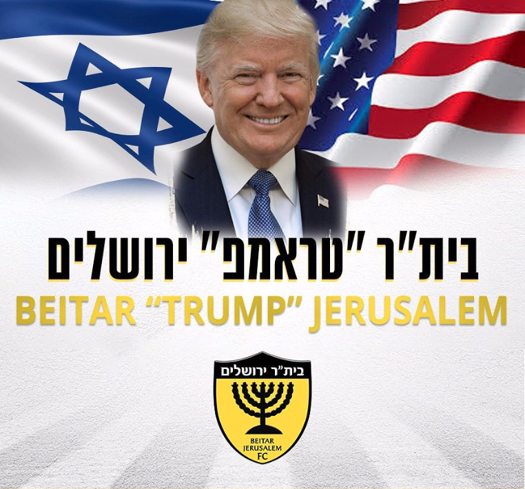 بالتزامن مع افتتاح الولايات المتحدة سفارتها في القدس الاثنين 14 مايو/أيار، أعلن نادي بيتار جاروزاليم لكرة القدم تغيير اسمه تكريماً للرئيس