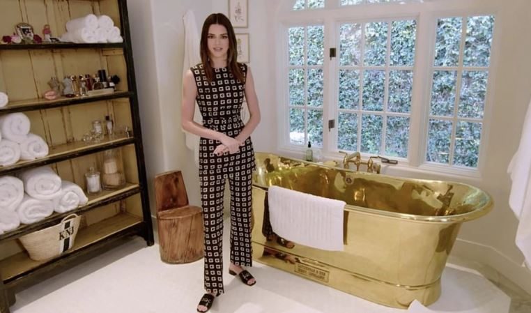 قامت عارضة الأزياء كيندال جينر، إحدى أخوات الأمريكية “كارداشيان-جينر”، باستعراض حوض حمامها الذهبي، وذلك خلال عرض مباشر لها على موقع