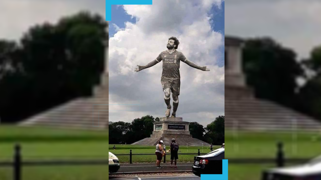 تداول مستخدمو شبكات التواصل الاجتماعي صورة “مفبركة” لتمثال يجسد النجم المصري محمد صلاح لاعب ليفربول الإنكليزي. وانتشرت الصورة بكثافة على