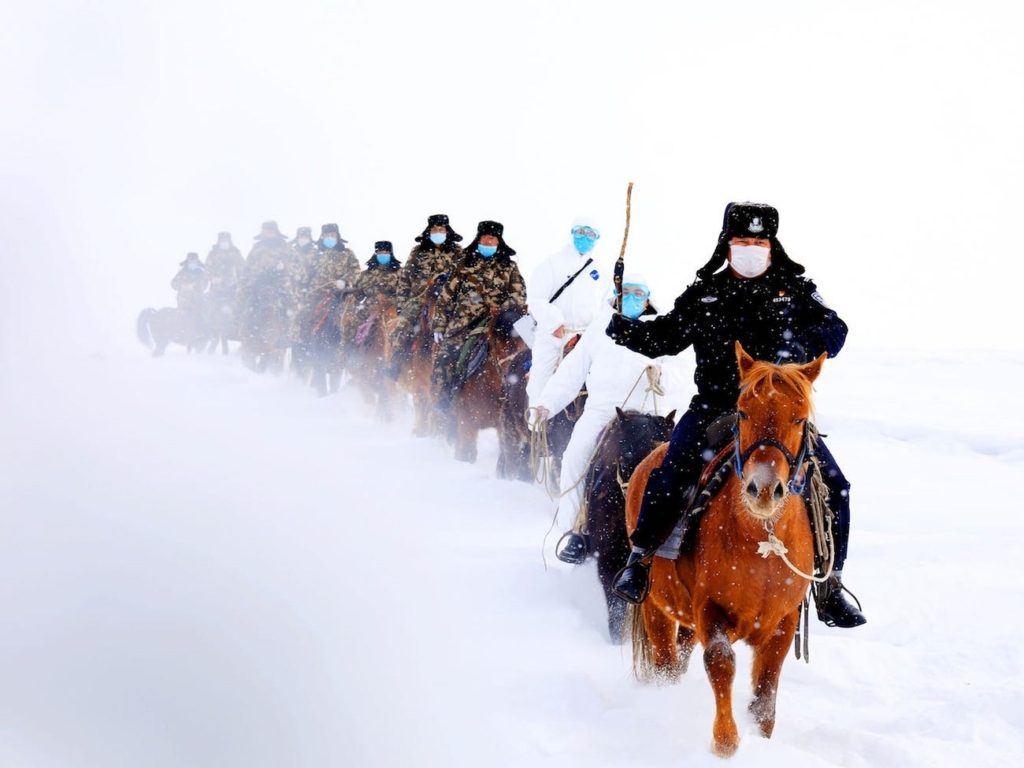 اضطر المسؤولون في الصين إلى امتطاء الخيول؛ للوصول إلى أكثر المناطق النائية بالبلاد، وسط ظروف مناخية صعبة، وذلك لتحذير السكان وإشعارهم بمدى خطورة فيروس كورونا.