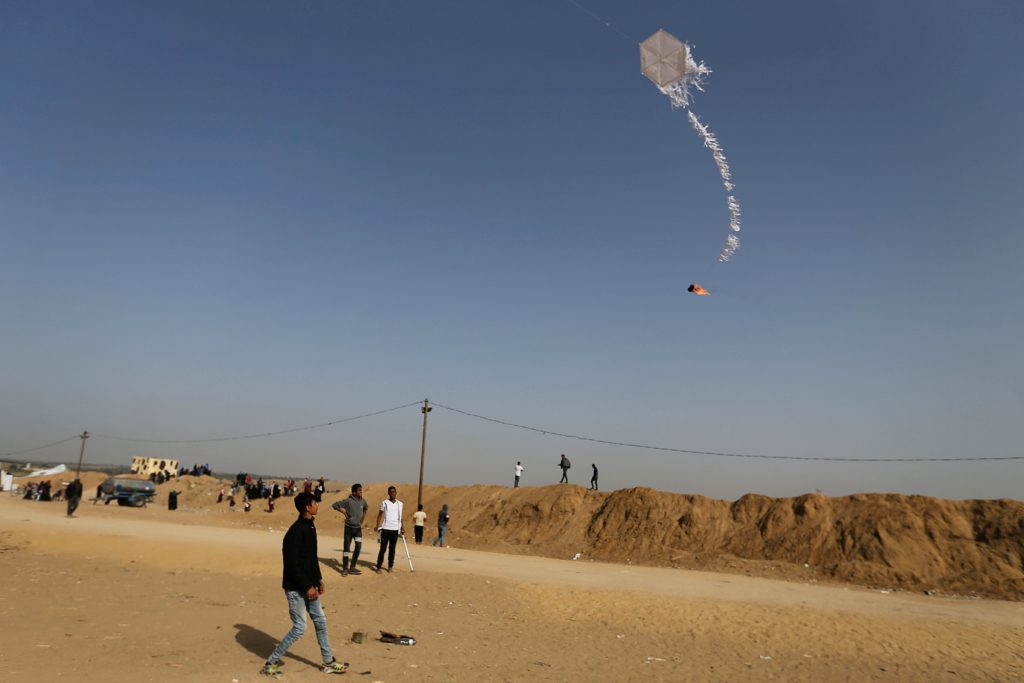 يقف مصعب القصاص بين مجموعة من الشبان على بُعد مئات أمتار من الحدود الإسرائيلية لقطاع غزة. يعلّق علبة كولا فارغة مملوءة بمادة مشتعلة من اختراعه في ذيل طائرة ورقية