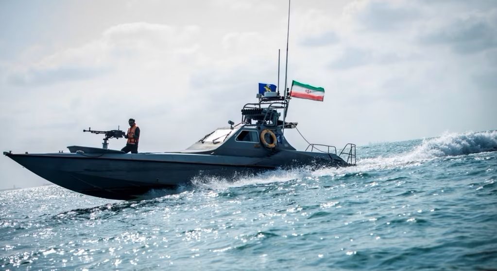 نشرت وسائل إعلام إيرانية، الأحد 20 أغسطس/آب 2023، فيديو لعملية تعقب زوارق حربية تابعة لـ”الحرس الثوري” الإيراني، لحاملة طائرات هليكوبتر