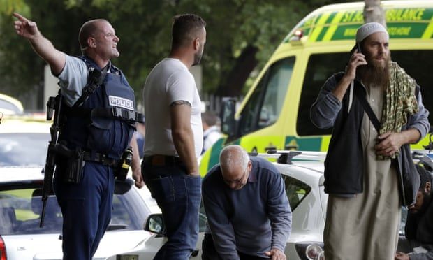 بينما يؤدي المسلمون شعائر صلاة الظهر في مسجدين بمدينة كرايست تشيرتش في نيوزيلندا، الجمعة 15 مارس/آذار 2019، أقدم مسلحون على